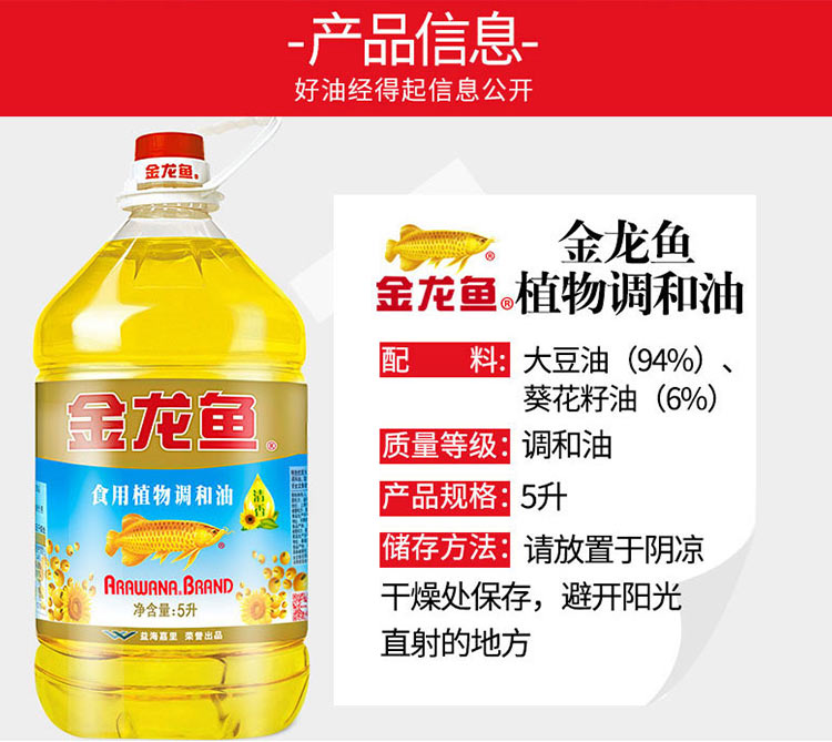金龍魚葵花籽清香型食用植物調和油5L